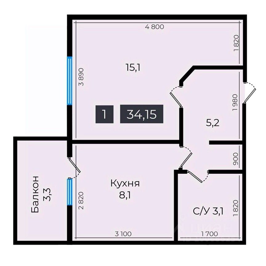 34 м² · Этаж 14 из 16