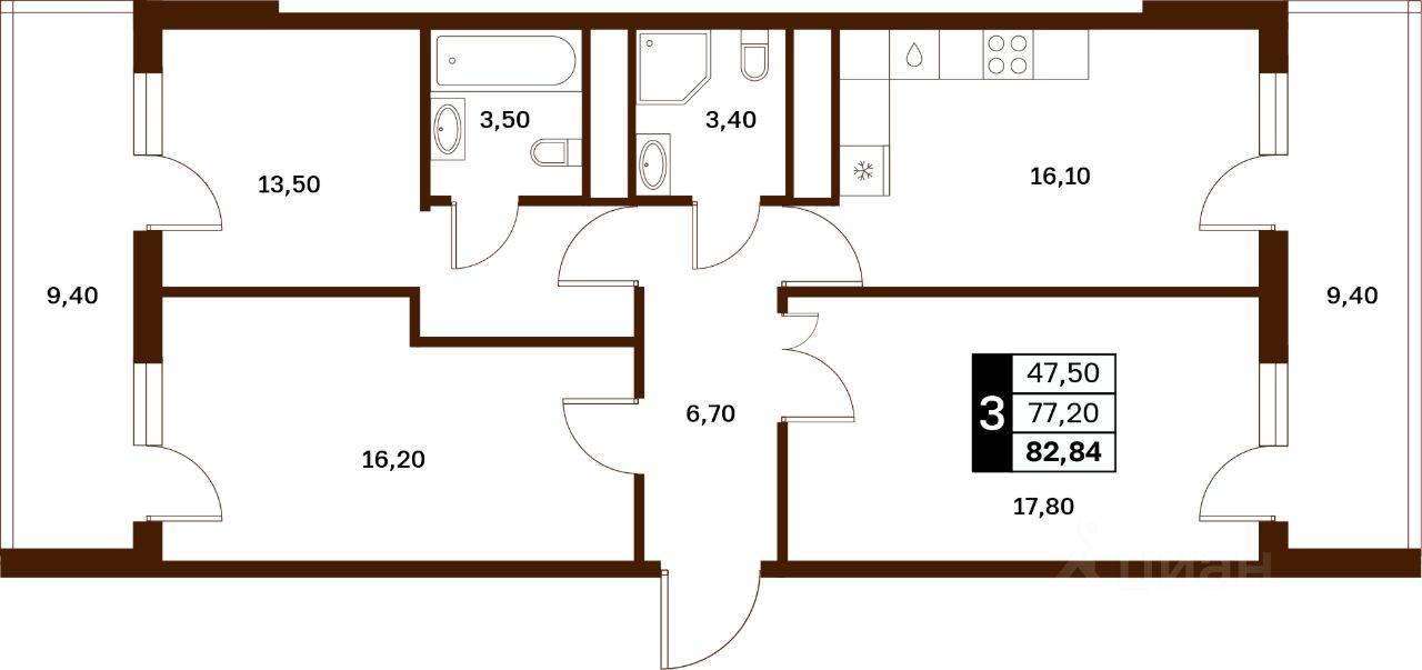 82 м² · Этаж 12 из 14