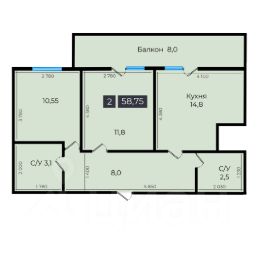 2-к квартира Показать на карте