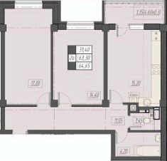 Продаётся 2-комнатная квартира в сданном доме (Дунаевского, 11Г (Позиция 2)), срок сдачи: IV-кв. 2024, общей площадью 60.48 кв.м., на 3 этаже. Новый жилой комплекс ''Дунаевский'' от застройщика ''СК Главстрой'' расположен по адресу: г. Невинномысск, улица Дунаевского.