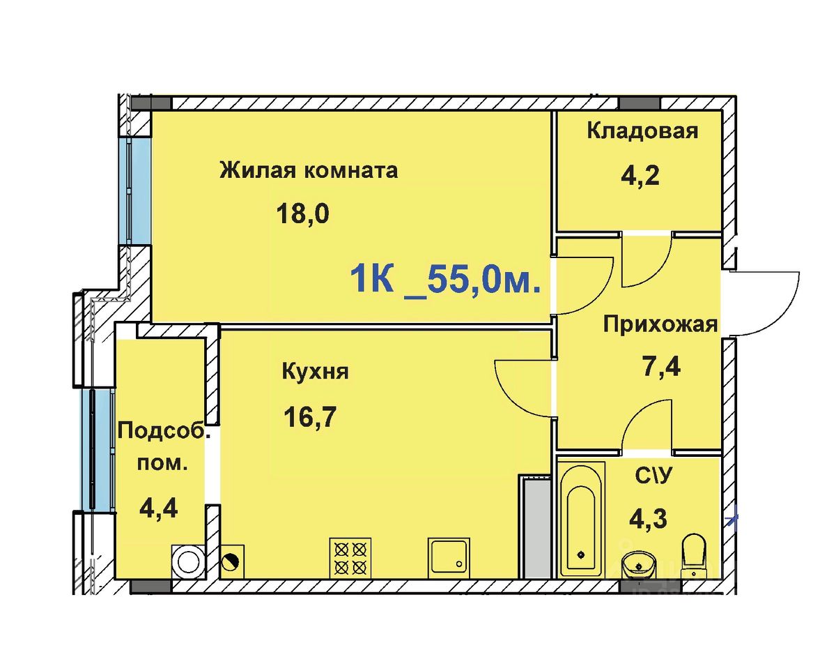 55 м² · Этаж 6 из 8