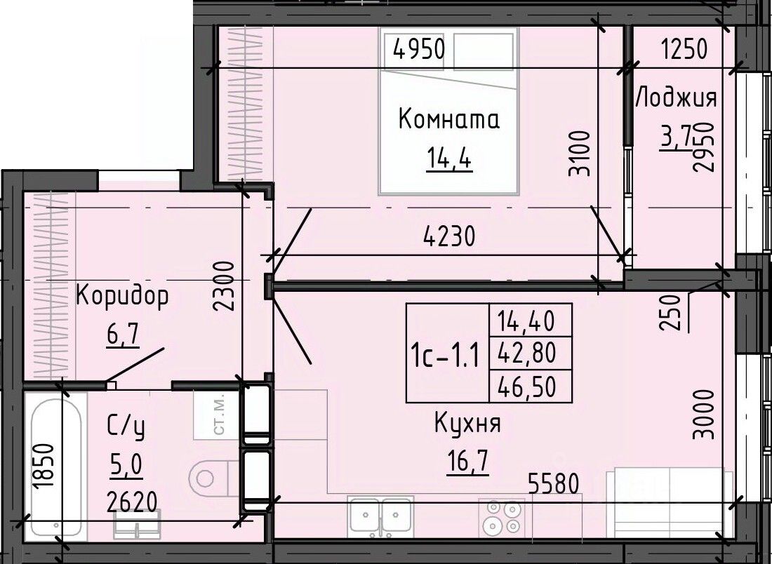 46 м² · Этаж 14 из 25