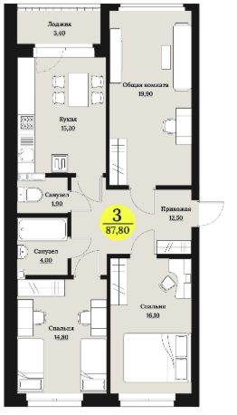 3-к квартира Показать на карте