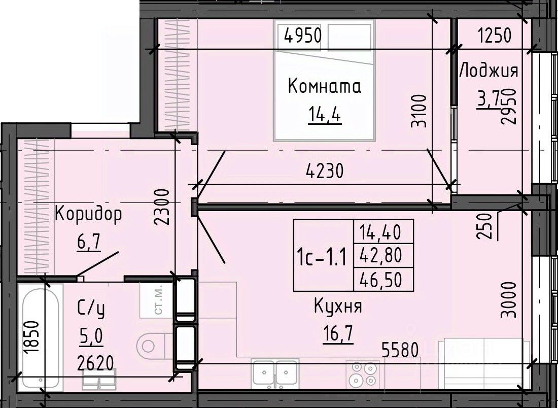 46 м² · Этаж 17 из 24