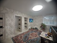 Продается дом в центре города! Общая площадь составляет 69 квадратных метров, а земельный участок — 6 соток. Дом построен из самана, обложен кирпичом, что обеспечивает тепло и экологичность, а также имеет цоколь. Новая кровля из металочерепицы гарантирует надежность. В доме выполнен современный ремонт: натяжные потолки, ламинат, моющие обои и керамическая плитка в кухне и прихожей. Три просторные комнаты — зал и две изолированные спальни позволяют разместить всю семью. Просторная прихожая, удобная кухня с кухонной плитой, оборудованный санузел с душевой кабиной и пластиковыми окнами с решетками создают комфортные условия для жизни. Во дворе размещена беседка, широкий двор с возможностью парковки автомобиля, ухоженный огород с фруктовыми деревьями и овощными культурами. Есть просторное подвальное помещение для хранения. Ворота выполнены из прочных железных материалов, а двор окружен аккуратным забором. Удобное расположение — рядом центр города, рынок, остановки транспорта, магазины, школа и детский сад. Документы в порядке. Этот дом отлично подойдет для проживания всей семьи.