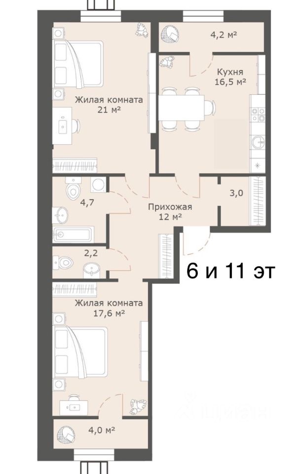 58 м² · Этаж 11 из 18