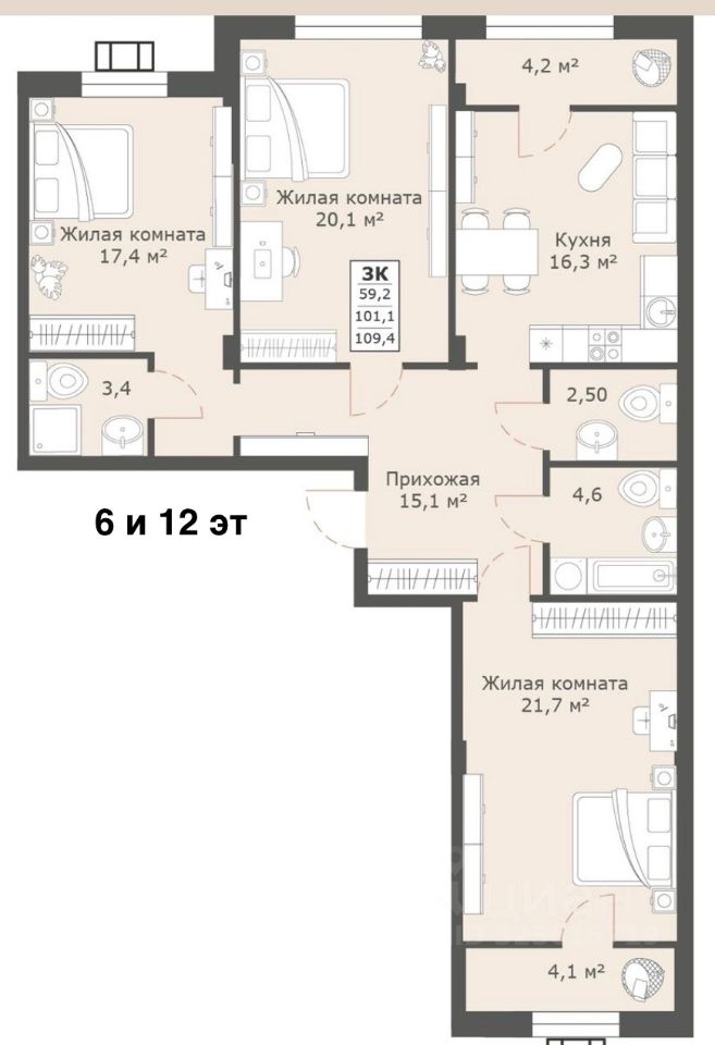 85 м² · Этаж 6 из 12