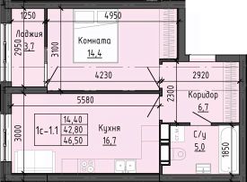 Продаётся 1-комнатная квартира в строящемся доме (Дом 2), срок сдачи: II-кв. 2028, общей площадью 46.49 кв.м., на 11 этаже. Новый жилой комплекс ''по ул. Доваторцев'' от застройщика ''ГК Стройград'' расположен по адресу: г. Ставрополь, улица Доваторцев.