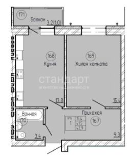 43 м2