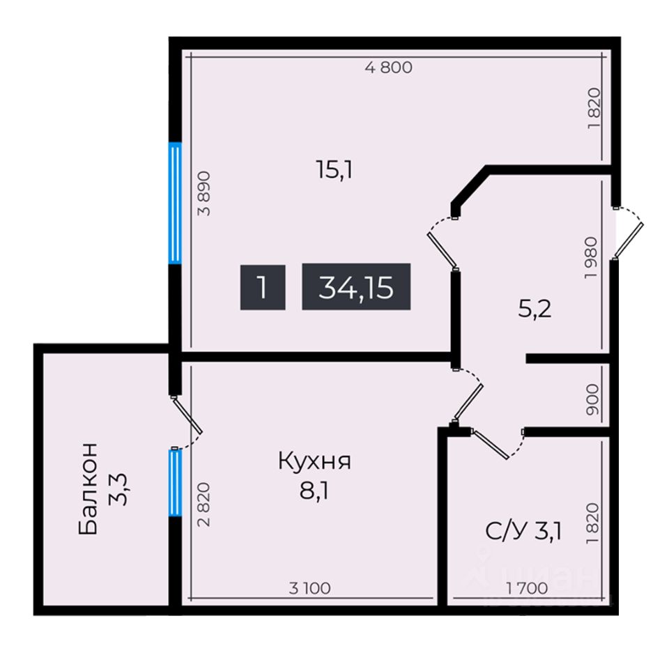 34 м² · Этаж 12 из 16