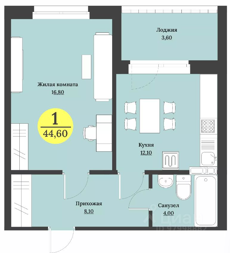 44 м² · Этаж 10 из 12