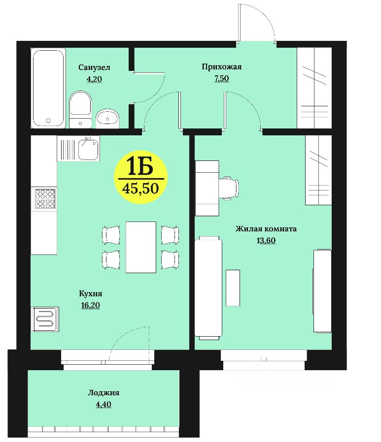 45 м² · Этаж 9 из 12