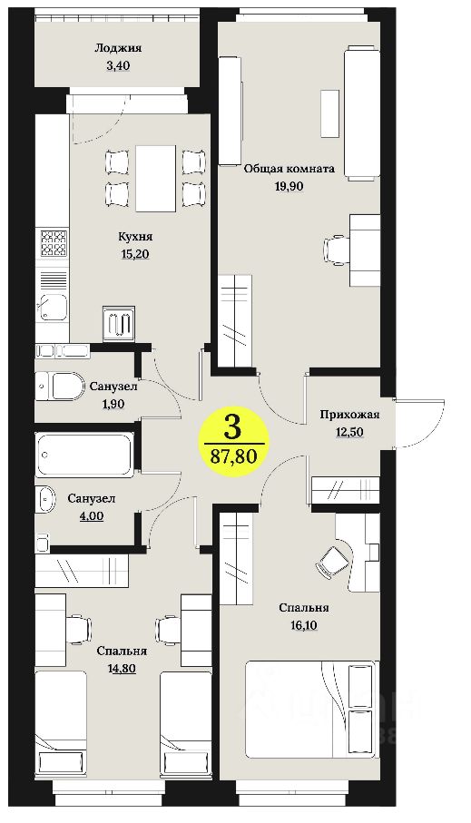 88 м² · Этаж 3 из 12