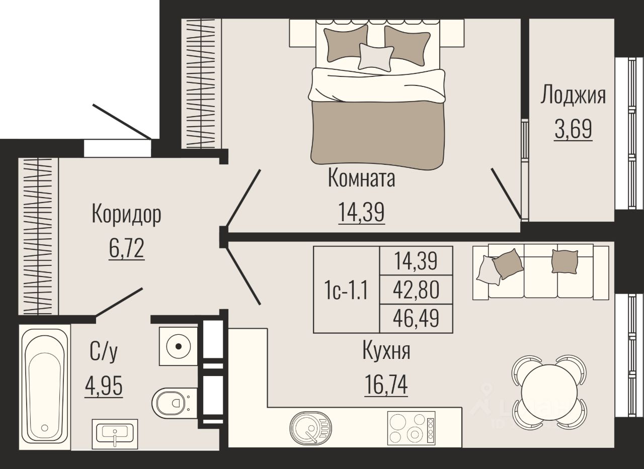 1-к, Рогожникова, 21 Показать на карте