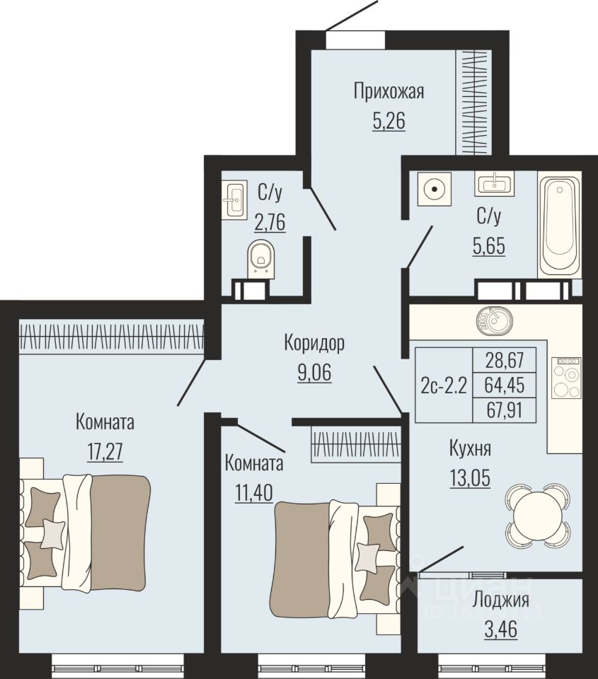 67 м² · Этаж 17 из 25
