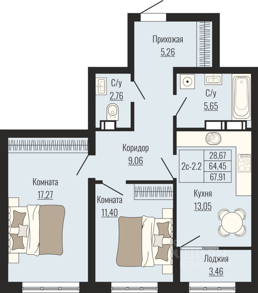 67 м² · Этаж 16 из 25
