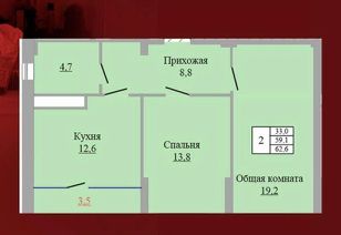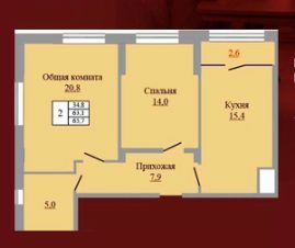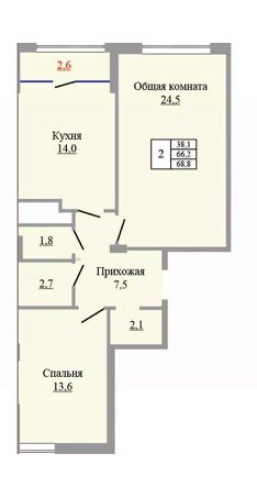 2-к квартира Показать на карте