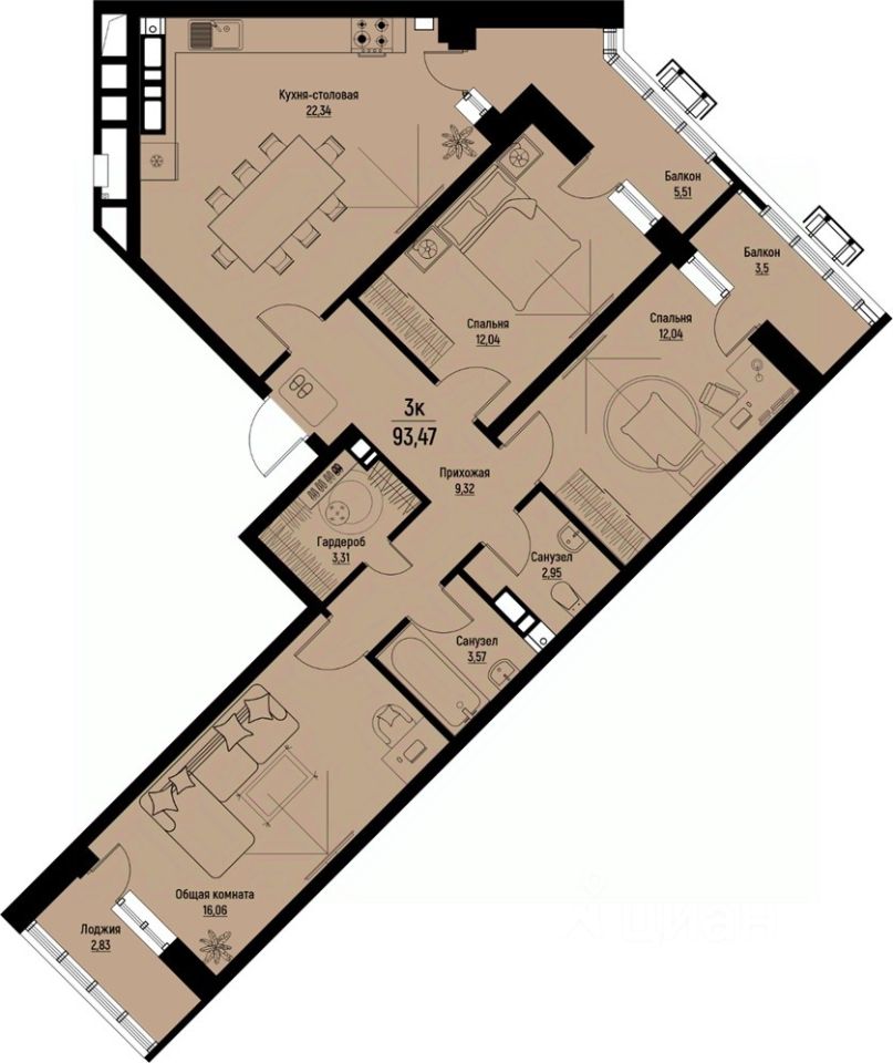 93 м² · Этаж 10 из 12