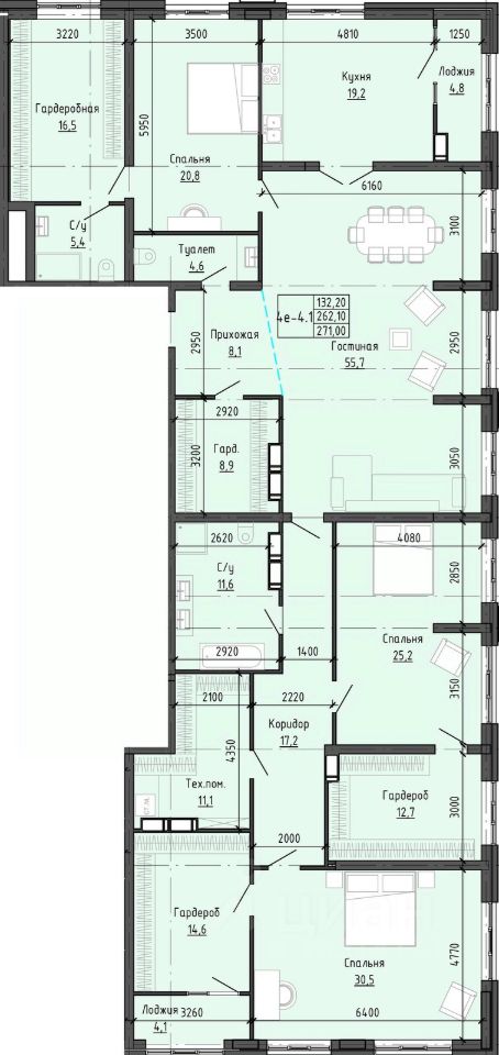 270 м² · Этаж 21 из 25