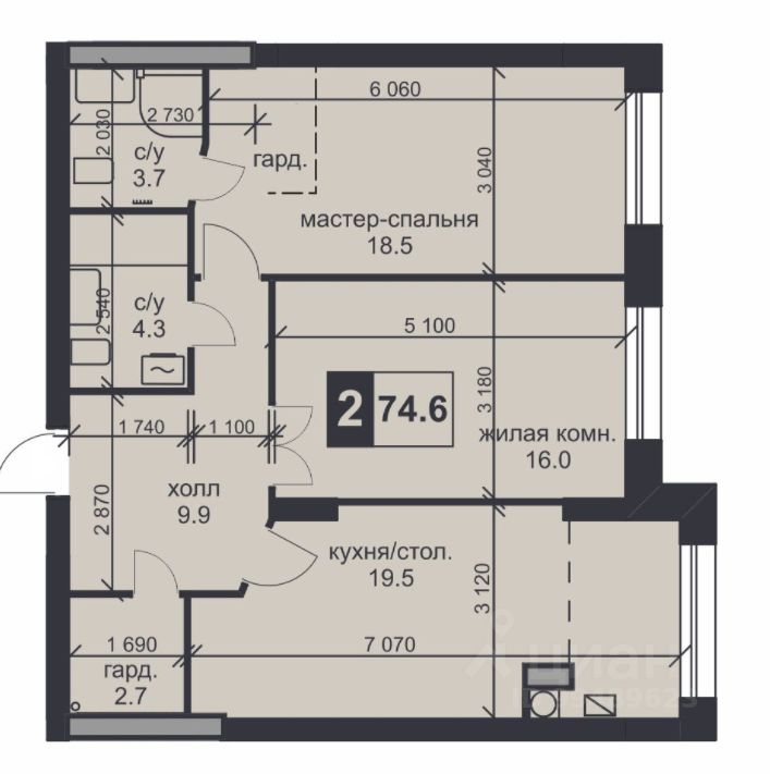 74 м² · Этаж 2 из 9