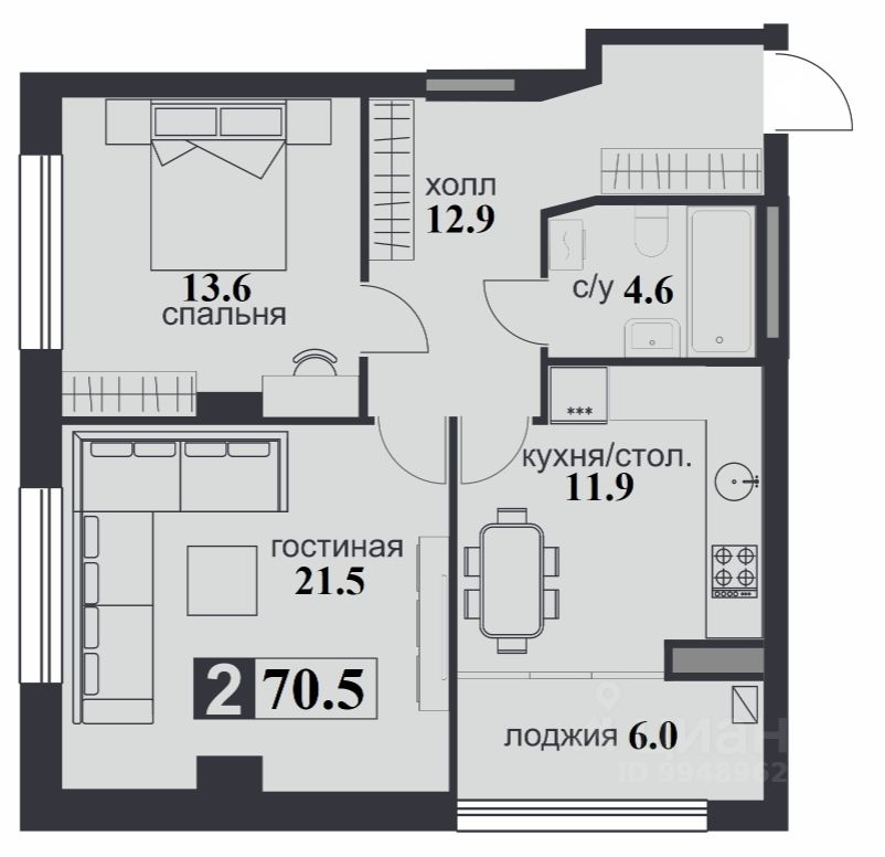 70 м² · Этаж 9 из 12
