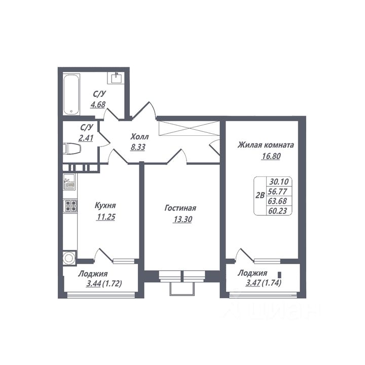 60 м² · Этаж 7 из 8