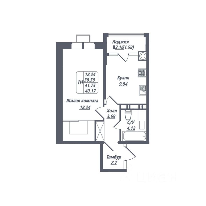 38 м² · Этаж 10 из 10