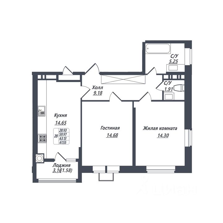 61 м² · Этаж 6 из 8