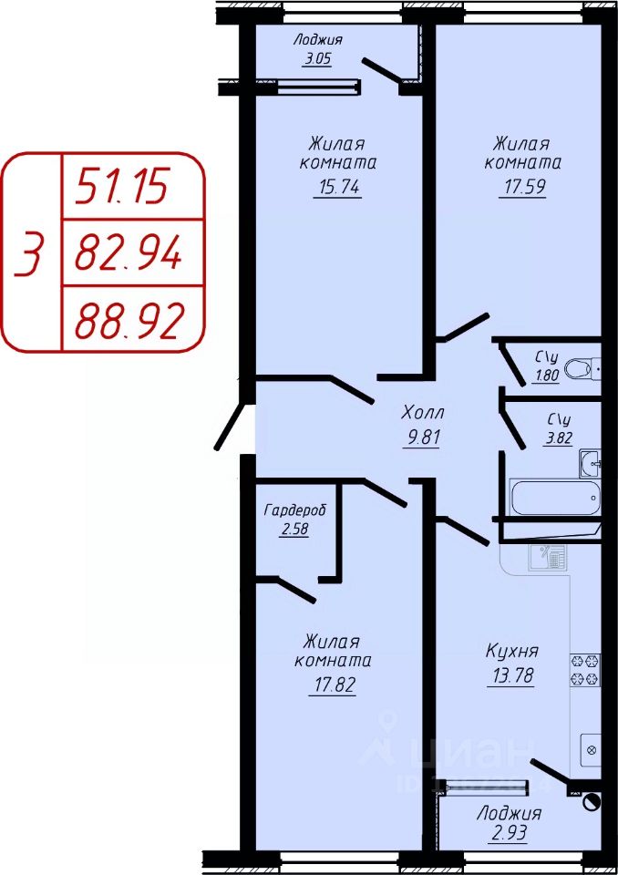 88 м² · Этаж 9 из 10