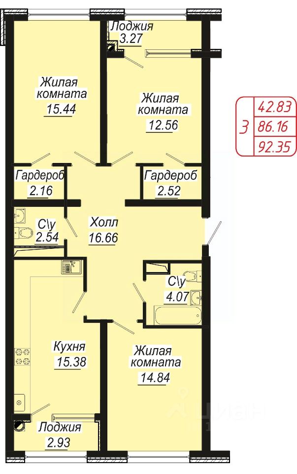 106 м² · Этаж 15 из 16