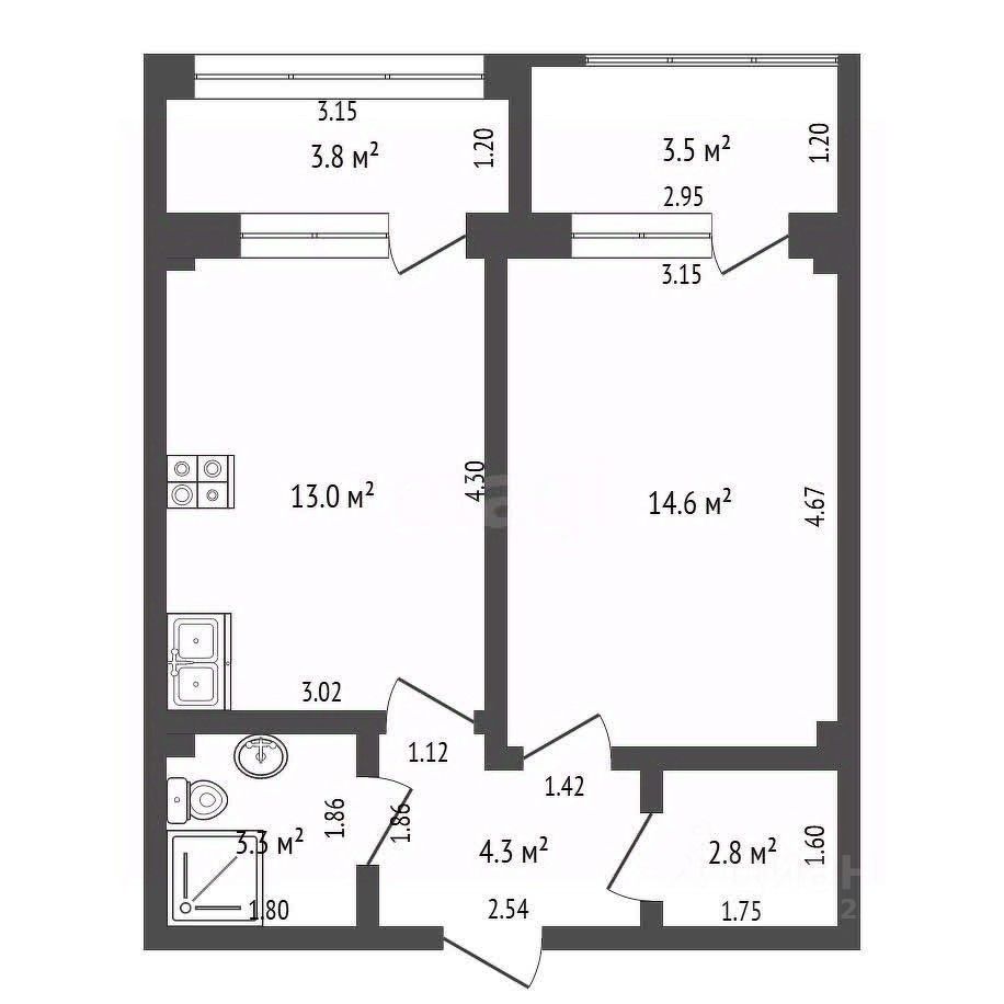 43 м² · Этаж 3 из 4