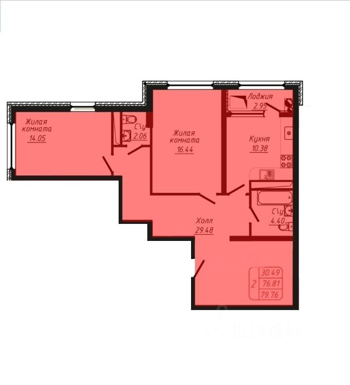 79 м² · Этаж 16 из 19