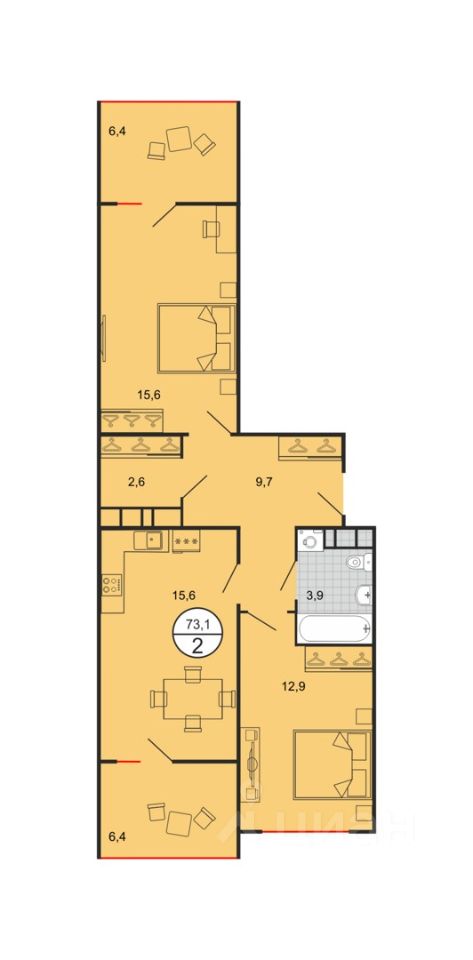 2-к, Доваторцев, 173 Показать на карте