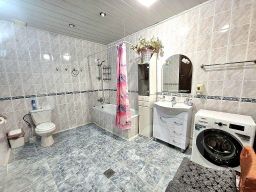 В продаже дом с круглым фасaдным эркелем.Выполнен в современном стиле с классическими элементами.Интерьер просторный,светлый,с хорошим освещением благодаря большим окнам в пол.Входя в дом нас встречает просторная прихожая,есть также гардеробная.Две спальные комнаты,кухня,санузел совмещенный.Ну а самый сок этого дома-это его зал.Окна в пол будут дарить лишь свет и улыбку в яркий солнечный деньОтопление идет от теплых полов,причем зимой не бывает холодно.Также есть большой погреб для хранения закруток.На участке есть пристройка бани,свой сад с насождениями,волер для собаки.Забор в процессе установки.Район тихий.Все инфраструктуры находятся в пешей доступности в 10 минутах.Для быстрого поиска объекта назовите номер ID:28531
