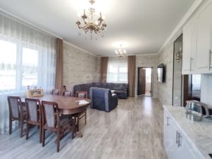 Арт. 106518106 Продается отдельно стоящий новый одноэтажный дом площадью 120 м2 на земельном участке 3,8 сотки.Дом находится в тихом, уютном и экологически чистом районе - микрорайон Южный, в шаговой доступности городское Озеро, магазины, школа, садики. Удобная транспортная развязка, прекрасное окружение, центральная канализация. Дом строился для себя специалистами высокого класса по индивидуальному проекту, при строительстве дома использовались современные технологии строительства и высококачественные материалы. Материал стен - полный пеплоблок + облицовочный кирпич (толщина стен около 55см), крыша - мягкая кровля, фундамент на сваях.Цена дома указана в состоянии под чистовую отделку - чистовая стяжка, штукатурка, шпатлевка, все коммуникации разведены по дому. Входная группа - ворота, калитка, забор по всему периметру участка, навес, а также брусчатка во дворе также входят в стоимость дома.В доме очень удобная планировка - просторная кухня гостиная с панорамным остеклением, три спальные комнаты, санузел, прихожая.