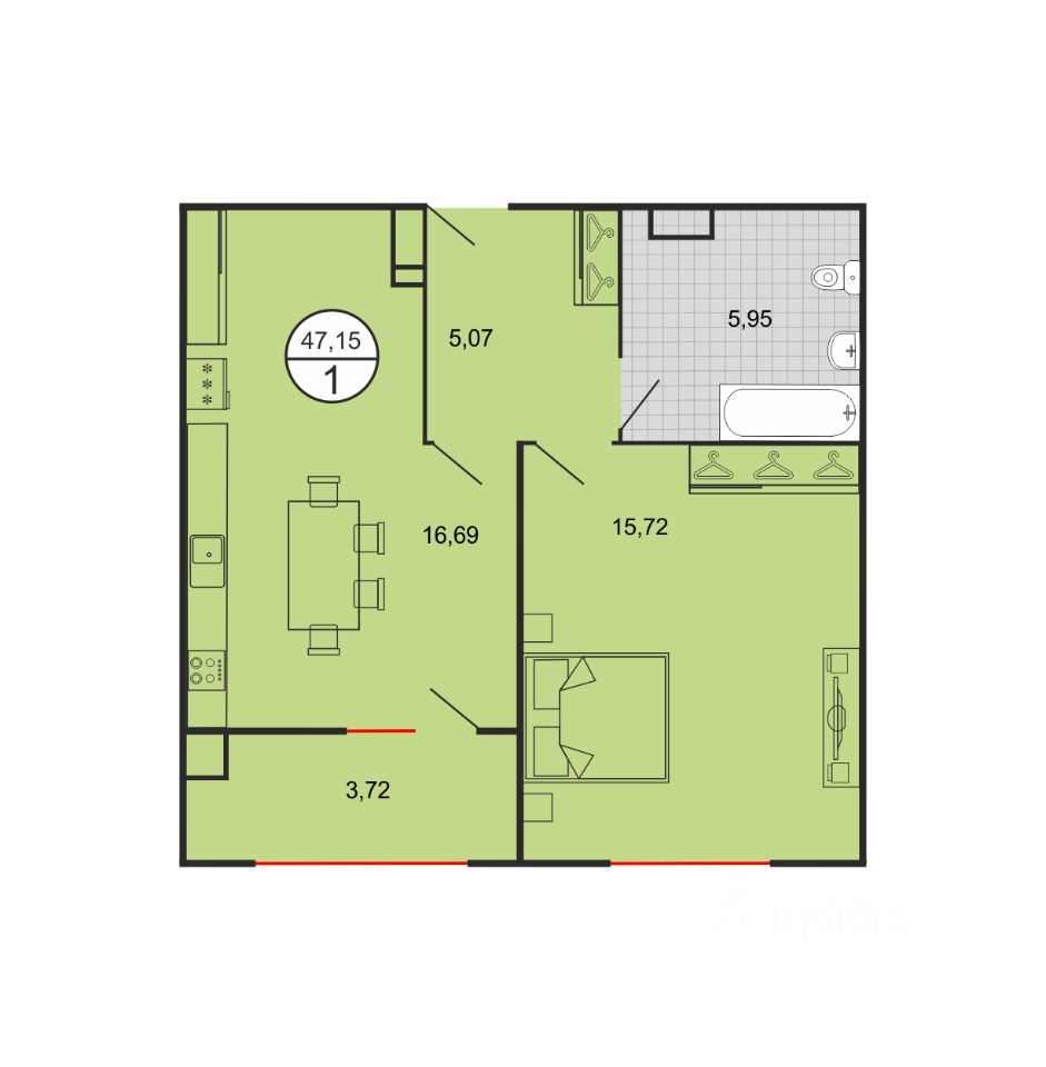 Общая площадь47,15 м2
