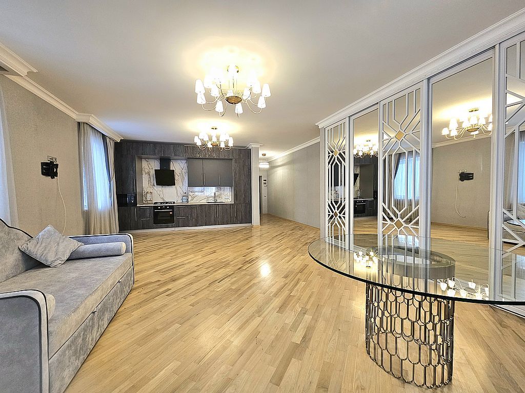 Продаётся шикарная трёхкомнатная квартира. Качественный евро-ремонт, заменена вся проводка и окна, европейская сантехника, во всех комнатах паркет из ореха.. Индивидуальное отопление (двухконтурный котёл), тёплый пол в санузле. Квартира дополнительных вложений не требует. Остаётся вся корпусная мебель, встроенные шкафы и кухонный гарнитур с встроенной техникой, духовой шкаф, варочная плита, микроволновая печь, холодильник встроен в кухню, шкаф купе в гостиной и спальне. Мягкая мебель: кровать в спальне и в зале диван. Кирпичный четырёх этажный дом на закрытой территории, из окон открывается отличный пейзаж.