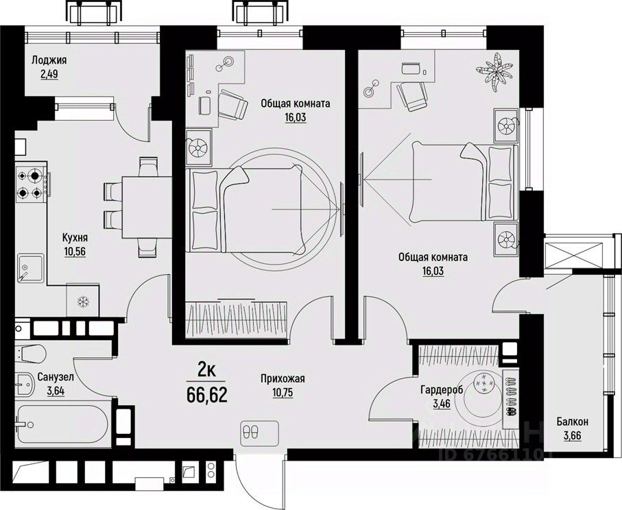 Общая площадь66,62 м2
