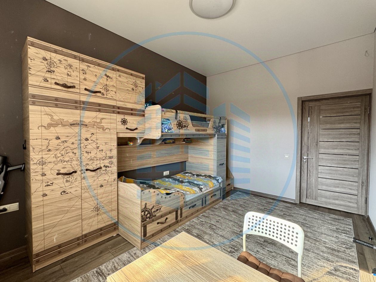 Планировка дома: просторный холл, кухня-гостиная, три изолированный спальни, два санузла. Классический ремонт. Остается кухонный гарнитур и бытовая техника.