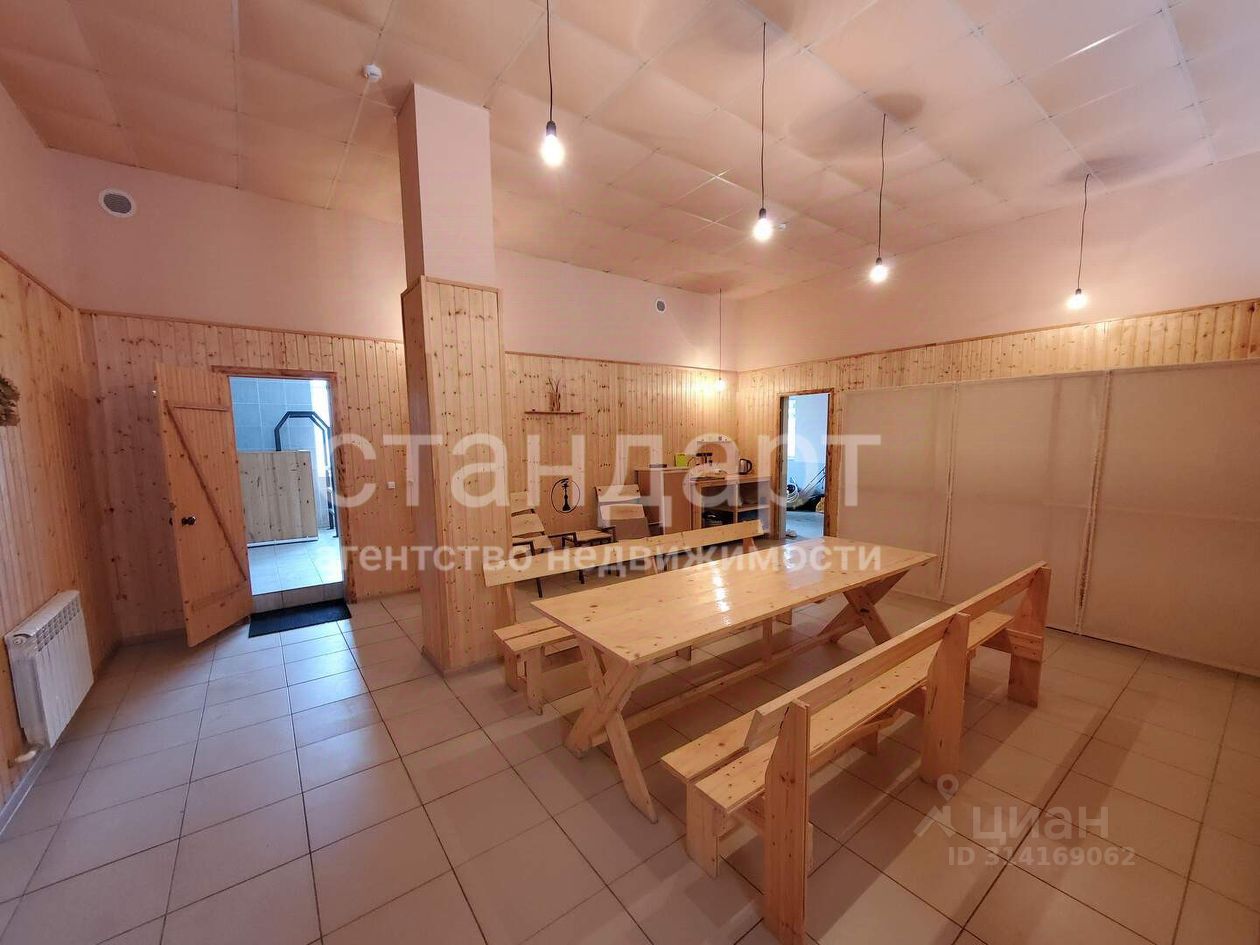 Первый этаж - банный комплекс и косметологический кабинет. Планировка - просторный зал для отдыха, русская баня, два санузла, косметологический кабинет, помещение свободного назначения, прихожая. По документам первый этаж оформлен как нежилое помещение площадью 112,4 м2.