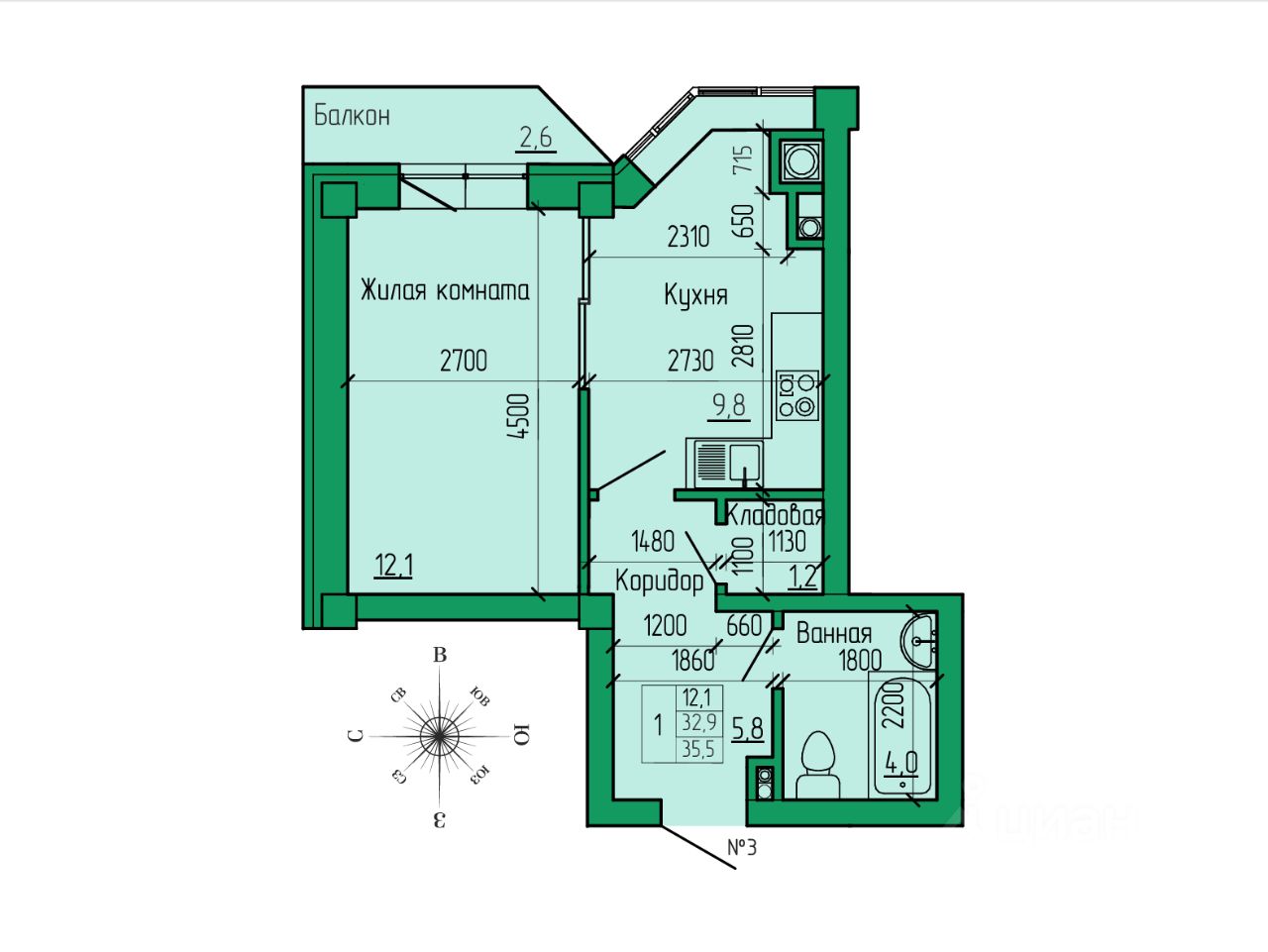 Общая площадь35,5 м2