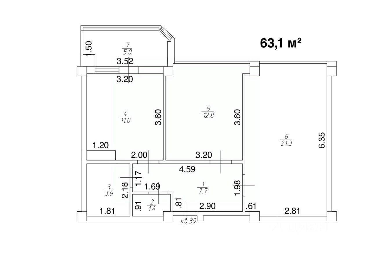 Общая площадь63,1 м2