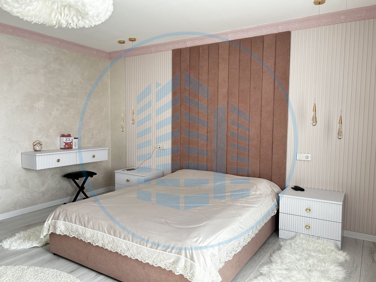 Дизайнерский ремонт создан для тех, кто ценит комфорт и стиль. Безупречный стиль и внимание к деталям. В спальнях ламинат, в кухне, гостиной и санузлах плитка. Комбинированные потолки с обилием освещения разных типов, декоративная штукатурка и обои.