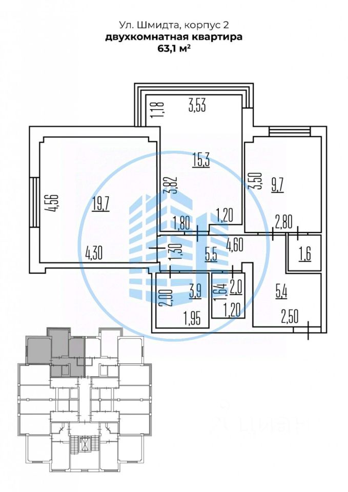 Планировка с видом на город: кухня с панорамным остеклением, две изолированные спальни, гардеробная, раздельный санузел.
