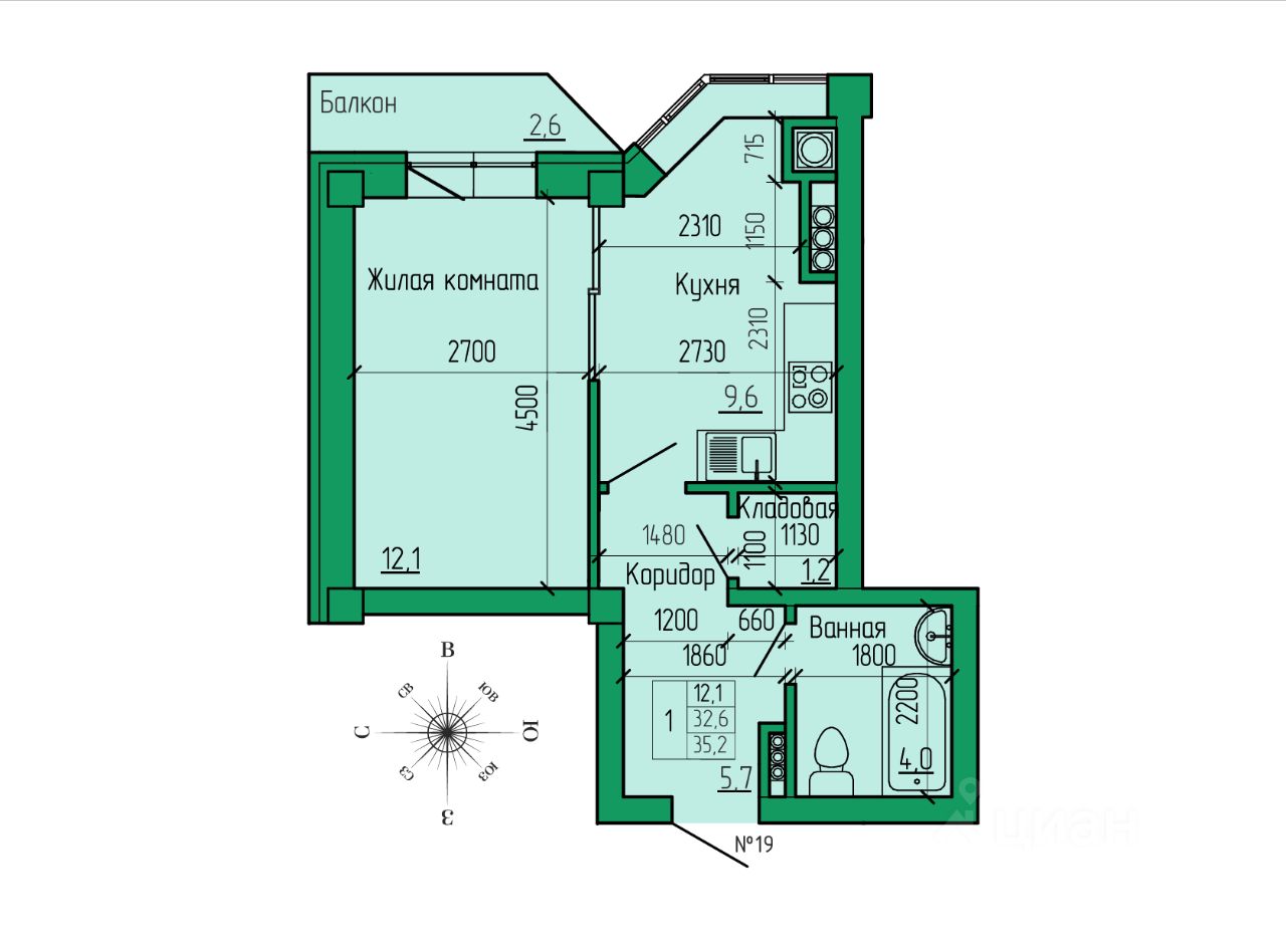 Общая площадь35,2 м2