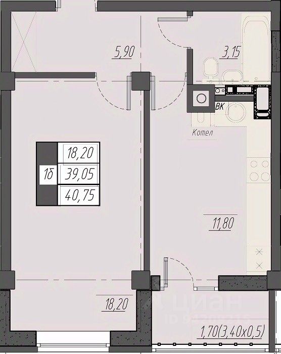 Общая площадь40,75 м2
