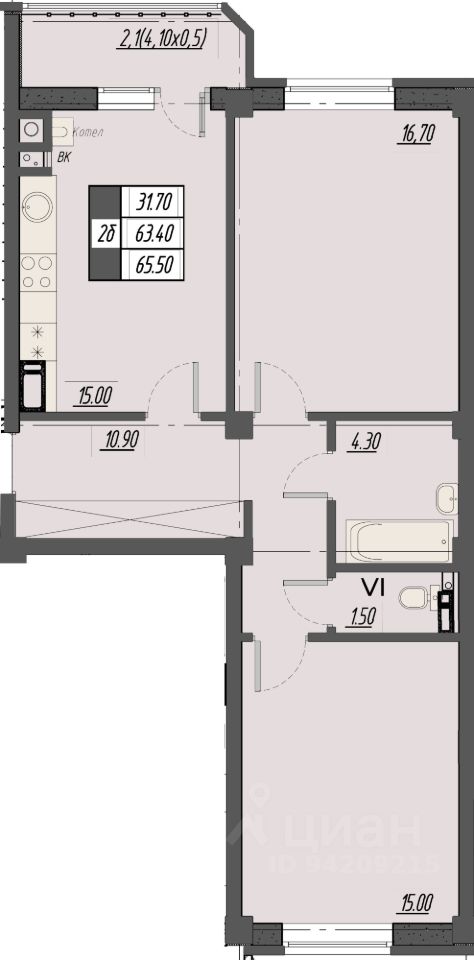 Общая площадь65,5 м2