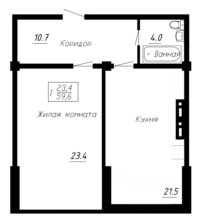 Общая площадь59,6 м2
