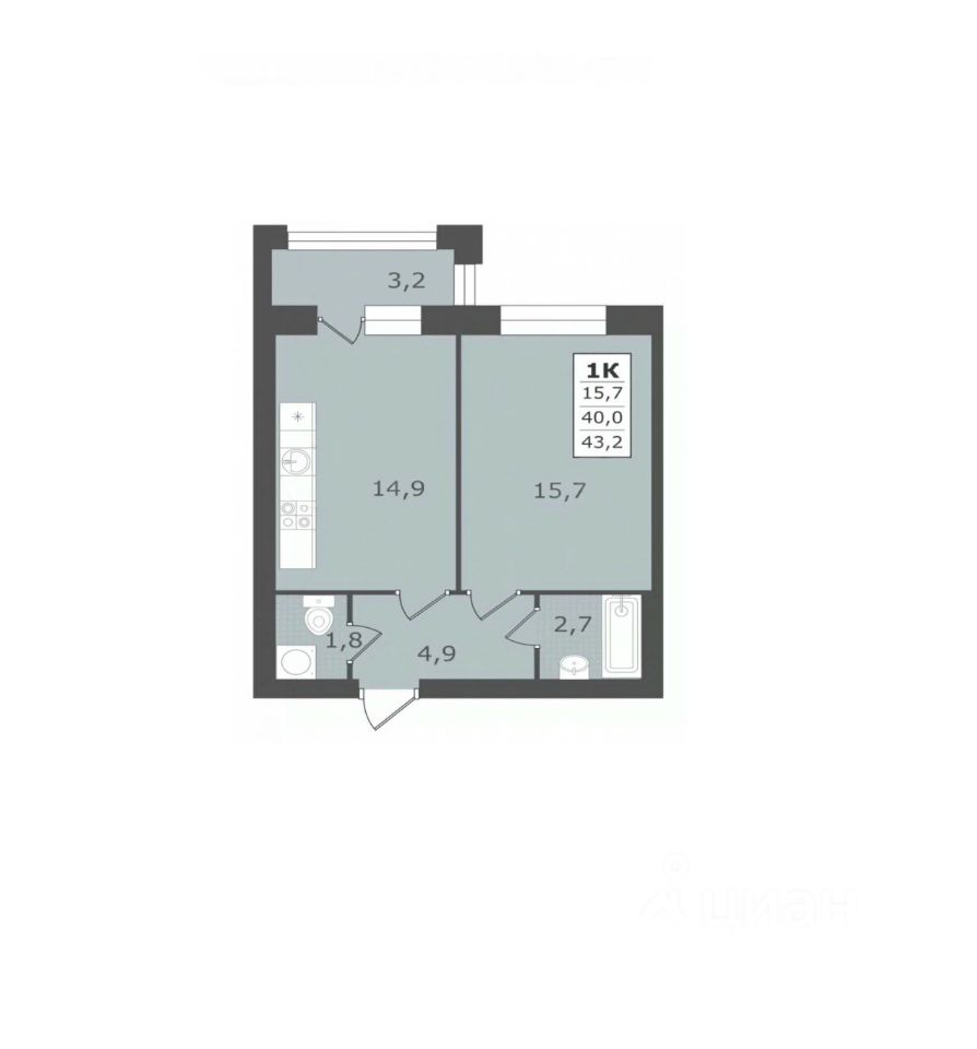 Общая площадь43,2 м2