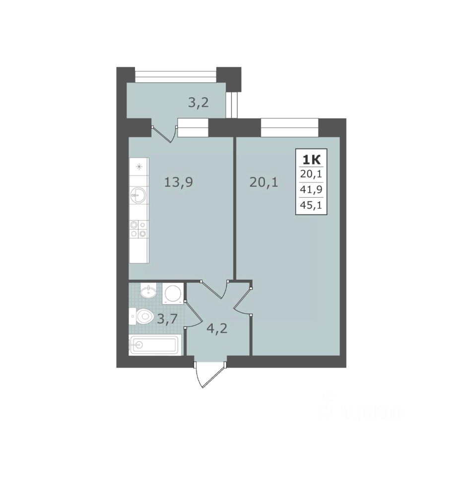 Общая площадь45,1 м2